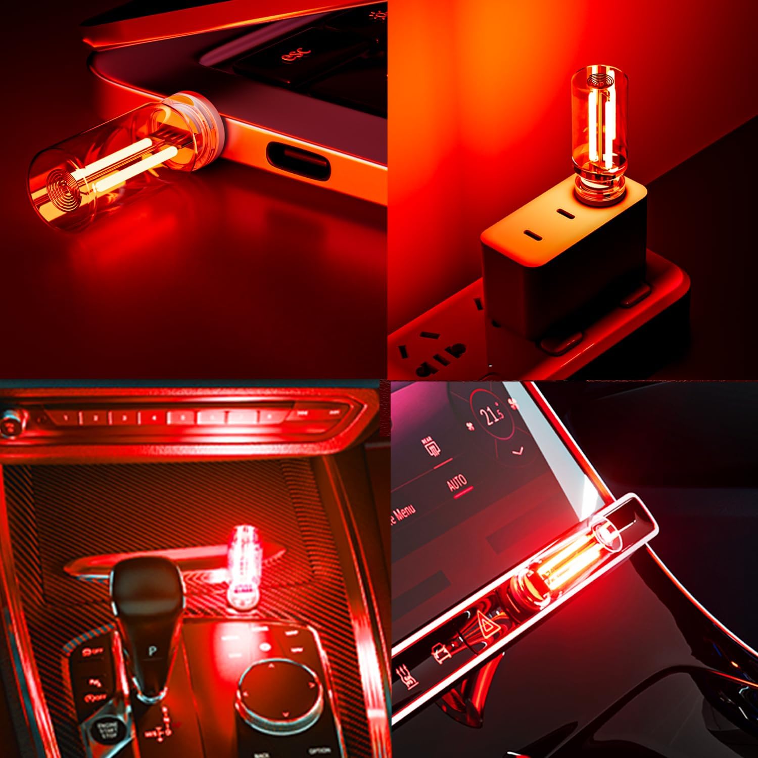 4 PCS USB Night Light Bulb, Portable Plug-in Retro Car Interior Ambient Lights, Mini Touch Dimmable Glass Bottle LED Bulb for Vehicle, Bedroom, Hallway, Camping, Holiday(4 PSC Red)