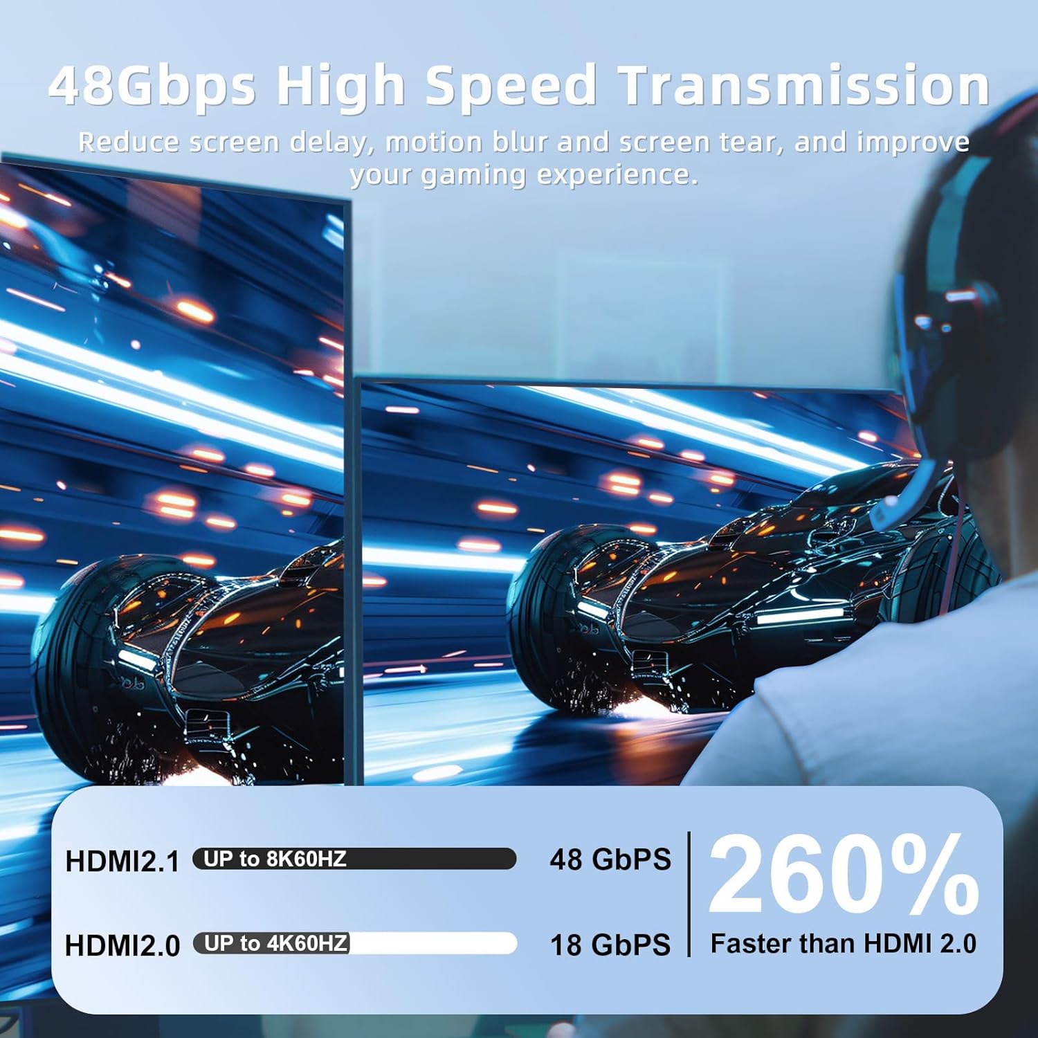 This high performance HDMI2.1 splitter provide one HDMI into Two HDMI outputs and supports 8K/4K/2K, Full 3D, 12-bit Deep Color as well as High Definition Lossless Audio. With its 48Gbps bandwidth and the additional features of the latest HDMI standards you can be sure of great HDMI distribution.APPLICATIONS:Simultaneously display one HDMI source on TwoTVs/projectors . Showroom display. University lecture hall display. Retail sales display. Commercial presentation switcher/scaler