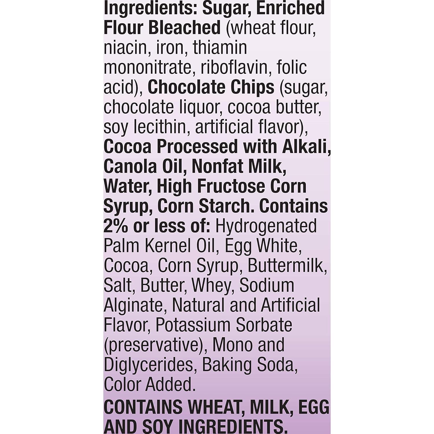 | Allergen Information | Eggs, Milk, Soy, Wheat |