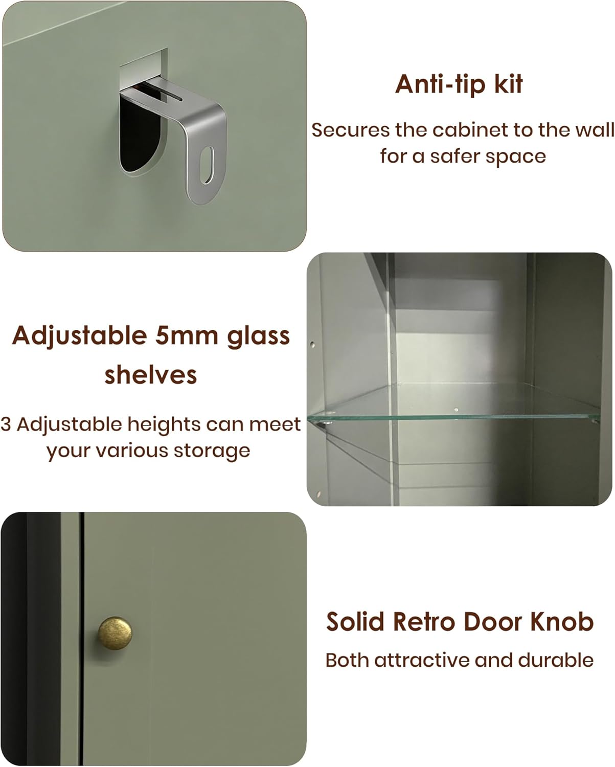 | Additional Features | Adjustable Shelf, Anti-Tipping, Illuminated, Moisture Resistant, Removable Shelf |