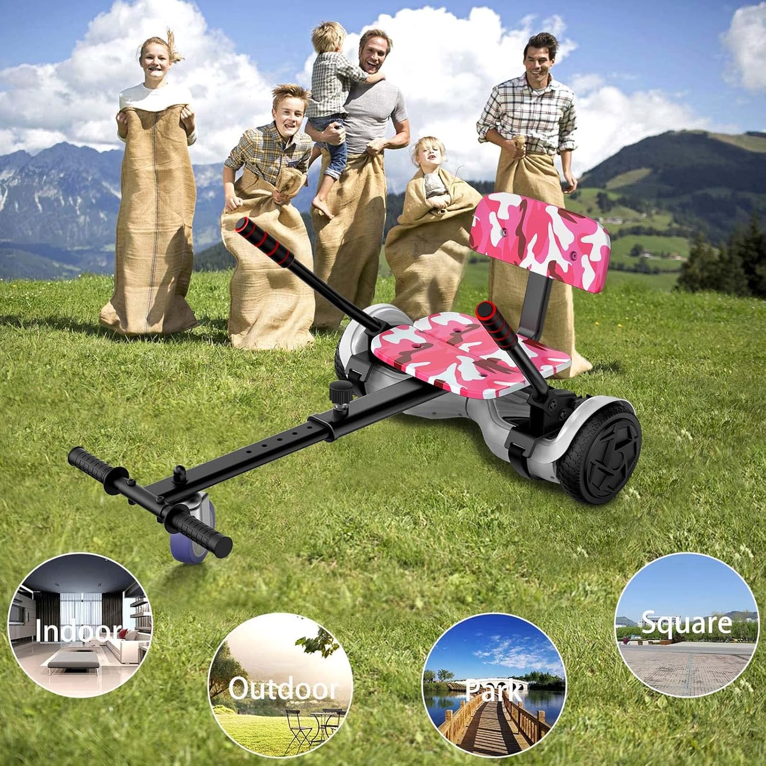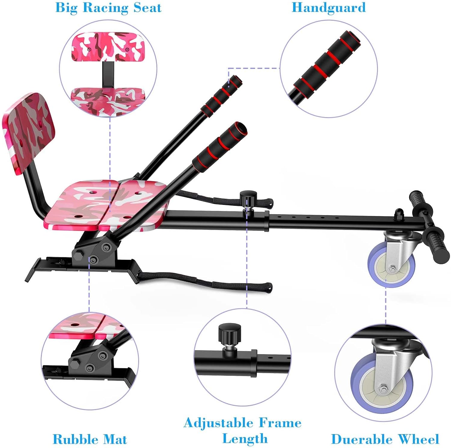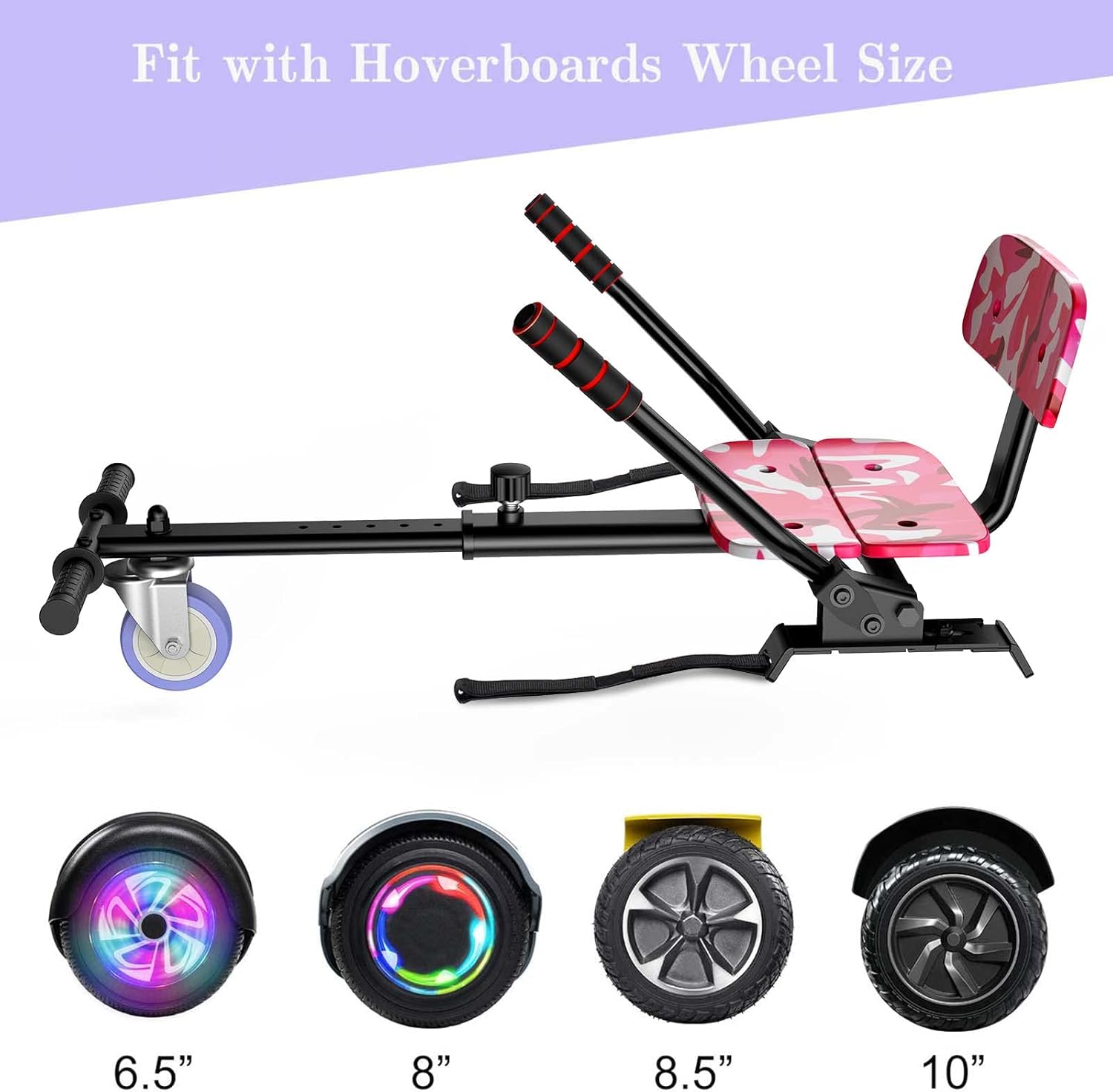 It is a health and beneficial sport, hoverboard seat attachment bring more fun to friends, enhance the parent's and children's interaction, it also will help kids work on their coordination and motor skills and horizons while building his/her confidence, get away from TV and digital games.Transforms your hoverboards into go-kart, hoverkart is safer choice than just standing on a hoverboard.Adjustable frame length with 360° front wheel and soft handle bar.Easy to Install: This hover board kart is able to adjust length of seat frame, Compatible with most self-balancing scooters with 6.5 ", 8" and 10" hoverboard wheel.It help kids work on their coordination and motor skills and horizons while building his/her confidence, best gifts for kids,families and friends.Operat the Kart Way:To go forward,operate the steering bars simultaneously downwards.To go backward,operate the steering bars simultaneously upwards.To go to the right,operate the right bar up and the left bar down.To go to the left,operate the right bar down and the left bar up.We provide 3 months warrenty, you can feel free contract us about any problem.
