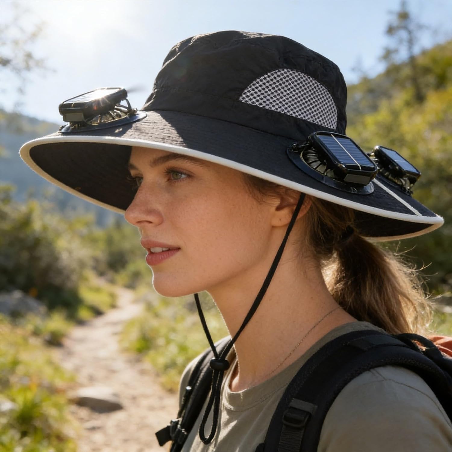 Sun Hat With 3 Fans Solar Charging USB Rechargeable Outdoor Hat UPF 50+Features:1. ** Design**: This sun hat features three built-in fans to keep you cool during hot outdoor activities like , hiking, and camping.2. **Solar-Powered Convenience**: Equipped with a solar charging , this hat can harness sunlight for energy, making it perfect for long days outdoors without worrying about battery life.3. **UPF 50+ Sun **: Designed with advanced technology, this hat UPF 50+ to shield your face and neck from harmful rays.4. **USB Rechargeable Option**: In addition to solar power, the hat comes with a USB charging option, allowing you to charge the fans quickly and easily when needed.5. **Comfortable and Adjustable Fit**: The breathable material and adjustable chin strap a secure and comfortable fit for all-day wear, making it a must-have for outdoor enthusiasts.Product Description:Sun Hat With 3 Fans Solar Charging USB Rechargeable Outdoor Hat UPF 50+Material: clothColor: as the picture shows, (Due to the difference between different monitors, the picture may have slight color difference. please make sure you do not mind before ordering, Thank you!)Package weight: 500gPackage size: 42x26x3cm,(Please allow 1-3mm error due to manual measurement. please make sure you do not mind before ordering.)