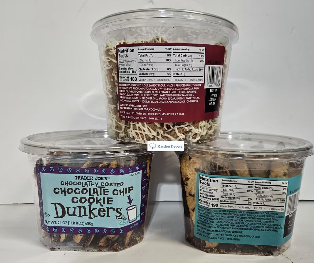 Trader Joe Dunkers Oatmeal Cranberry Cookies, 2 of Chocolatey Coated Chocolate Chip Cookie (Three Containers)