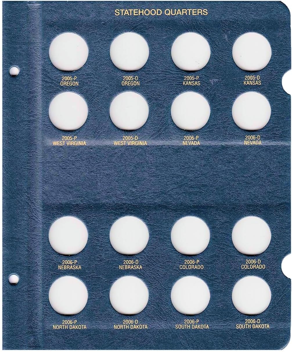 Strong, soil-resistant Whitman albums with blue textured leatherette cover are designed with thumb notches for easy window removal. Album includes District of Columbia and the five United States trust territories: the Commonwealth of Puero Rico, Guam, American Samoa, the U.S. Virgin Islands, and the Commonwealth of the Northern Mariana Islands.