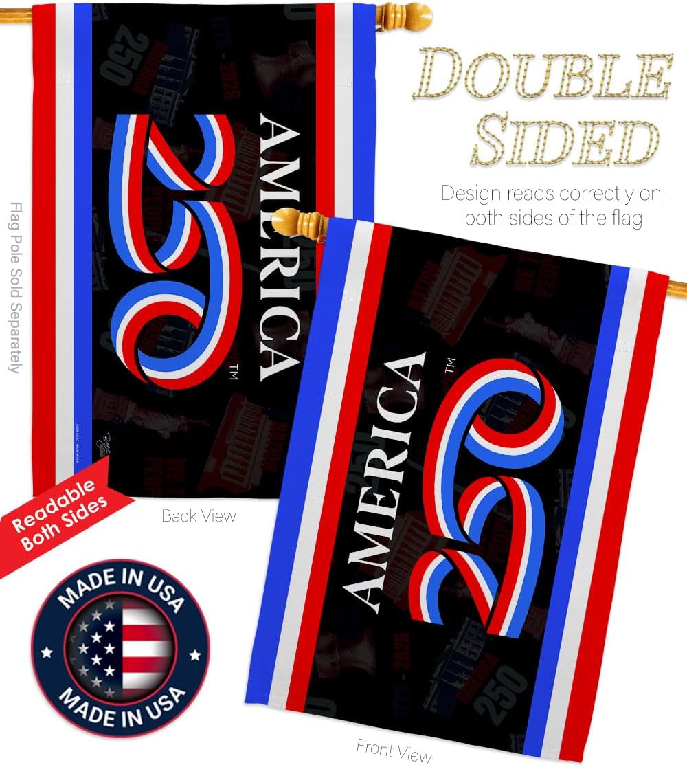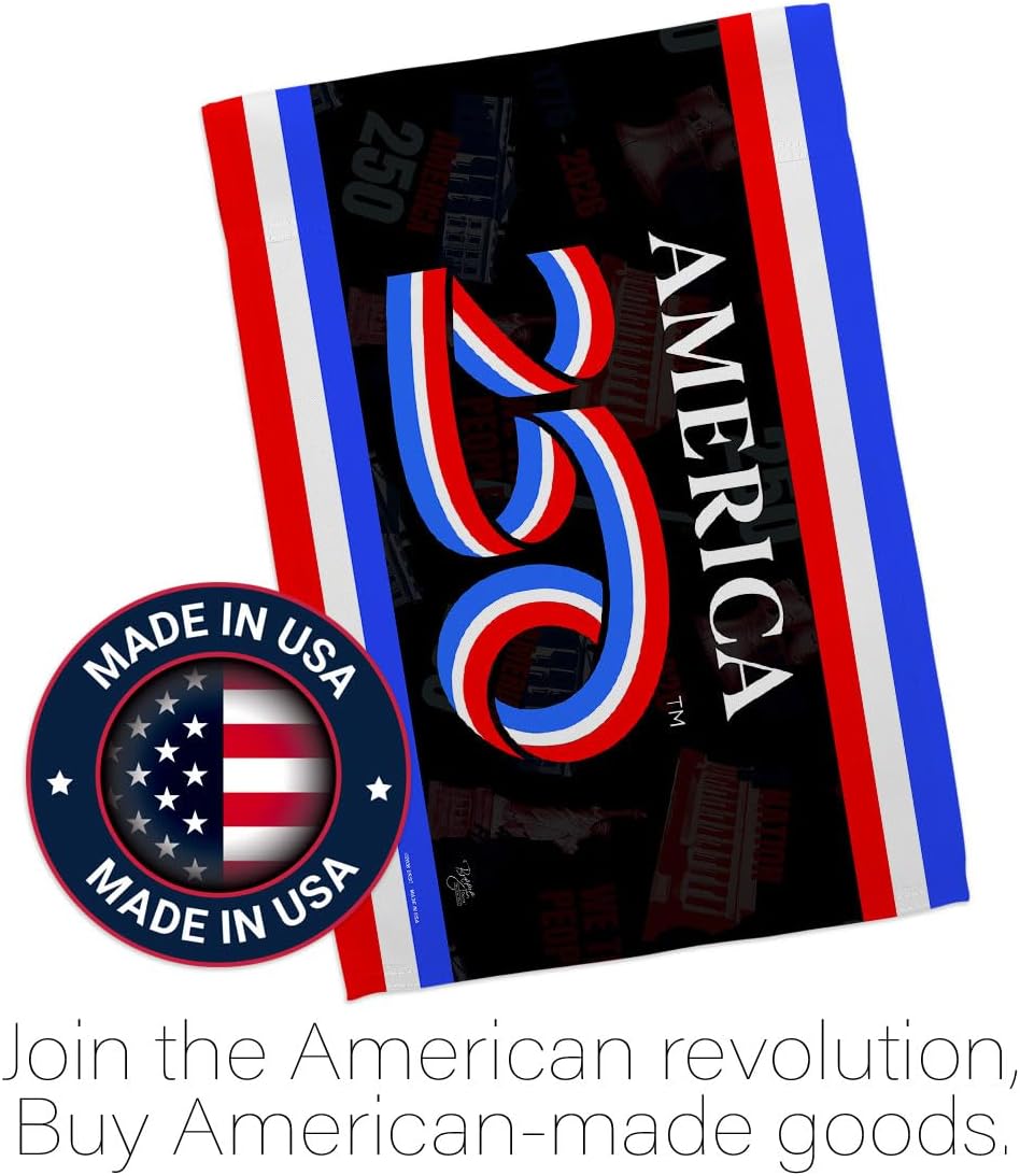 America 250th Anniversary Beautiful Large House FlagBreeze Decor have variety of House Flag for all occasions. Uniquely design for hanging indoor or outdoor use. We are committed to offering you exceptional values. Our customers enjoy displaying our House Flag for longer periods. Specification: Theme: Independence Day/July 4th/ America 250th Anniversary Size: House Flag 28" x 40" Print: Double-Sided Readable: Readable Both Sides Material: Polyester Weather Resistant 3 Layers Blockout Stitching: Double Stitched Display: Vertical Hang Type: Sleeve Artist: © Rose Gordon Special Features: Origin: Made In USAPackage Include: 1 pc x House Flag 28" x 40" Package Decorative FlagsFor more than a decade, we’ve been dedicated to manufacturing flags with no comparison in quality and beautiful designs. Our flags are made with our Pro Guard material that is soft to the touch and designs can be read correctly on the flag. A feature that our customers will love. We are committed to using eco-friendly inks that won’t leave a foot print in our environment.