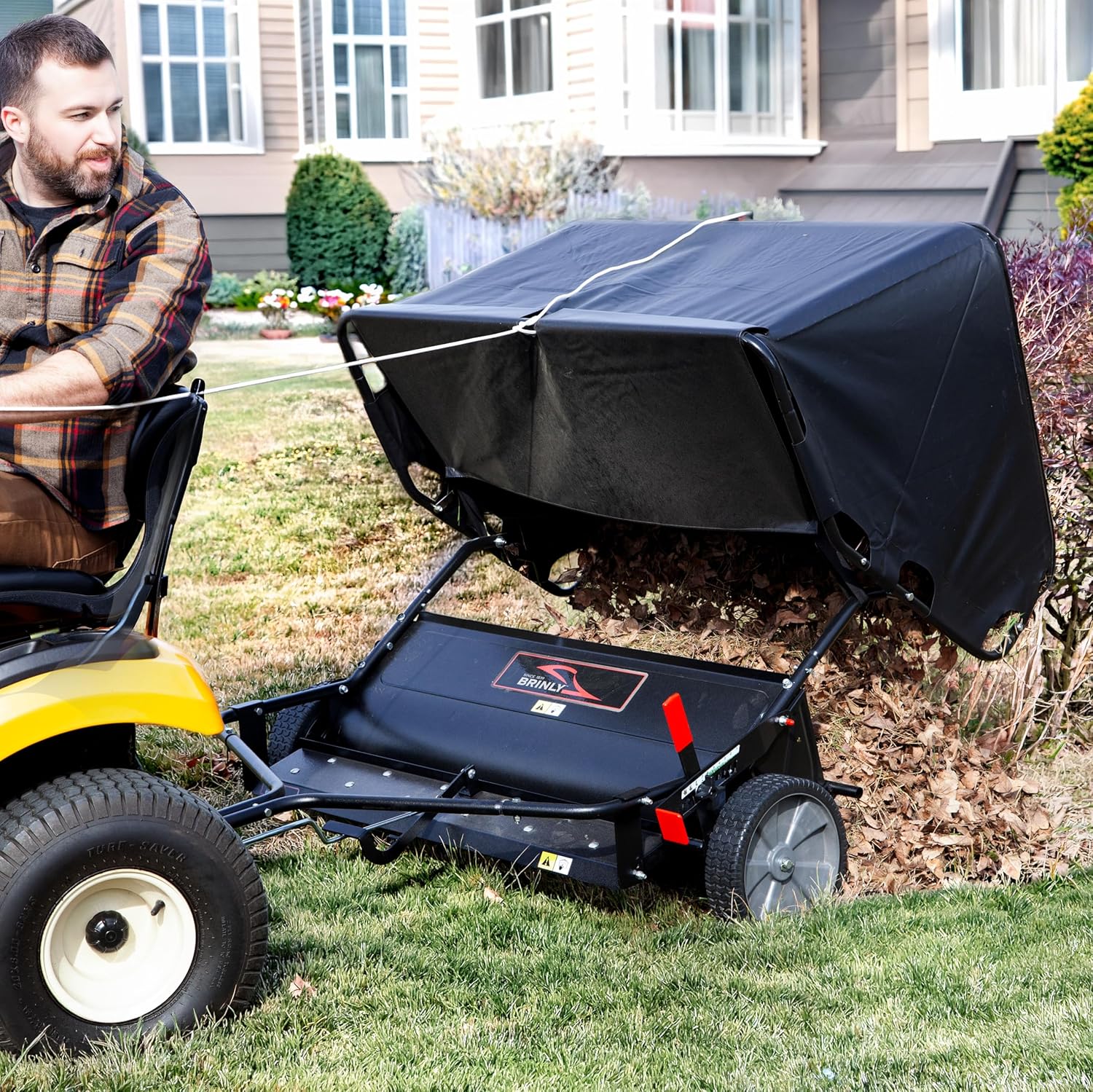 Cut job time in half with the powerful tool that turns dethatching and sweeping into one project instead of two! The LSDT2-42BH combines a premium lawn sweeper with a durable tine dethatcher to help you get your projects done faster and easier. A 2-in-1 solution for maximum efficiency, you can dethatch while simultaneously picking up the debris left behind. Just need to sweep? Use the easy-pull handle to move the tines up and out of the way– there’s no need to remove the dethatcher, even in heavy leaves! Built to outperform any line of sweepers on the market, the LSDT-42BH is enhanced with multiple rows of flexible tines. The oversized, full-swing, fabric hamper can haul an incredible 20-cubic feet, meaning less stops for emptying. The Brinly 42” Lawn Sweeper has three times the capacity of a standard lawn mower bagger. With six 11” diameter, high-velocity brushes, you’ll sweep up thatch and debris fast and be well on your way to the healthier, thicker turf you’re after.