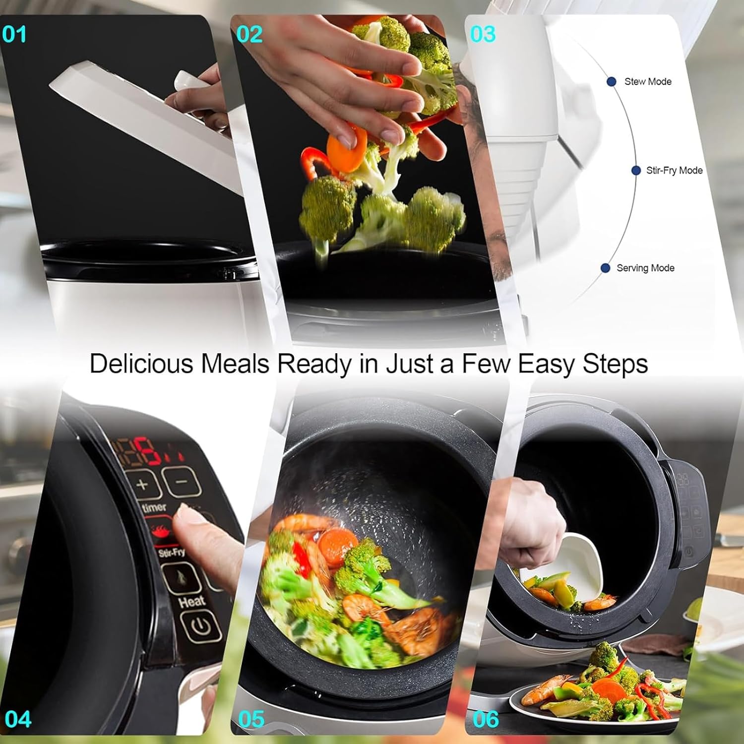❤With our robot, you'll no longer be scrambling to cook; enjoy a delicious meal in just 5 minutes.Features:-360° drum rotation, three-level pot adjustment-Three-level heat adjustment, enjoy delicious food in 5 minutes-IH electromagnetic heating for even heating-Non-stick inner pot for easy cleaning-Smart touch screen for simple operation●Specification-Name: Automatic Cooking Machine-Heating method: lH electromagnetic heating-Control method: microcomputer control-Pot volume: 6L-Control panel: touch screen-Rated voltage: 220V/110V-Rated power: 2000W/1000W-Size: 310*370*365mm●Package List1 *Smart Cooking Machine●After-sales ServiceAs an honest international seller, customer satisfaction is our top priority. If you have any questions about the product, you can email us, we will help you within 24 hours.
