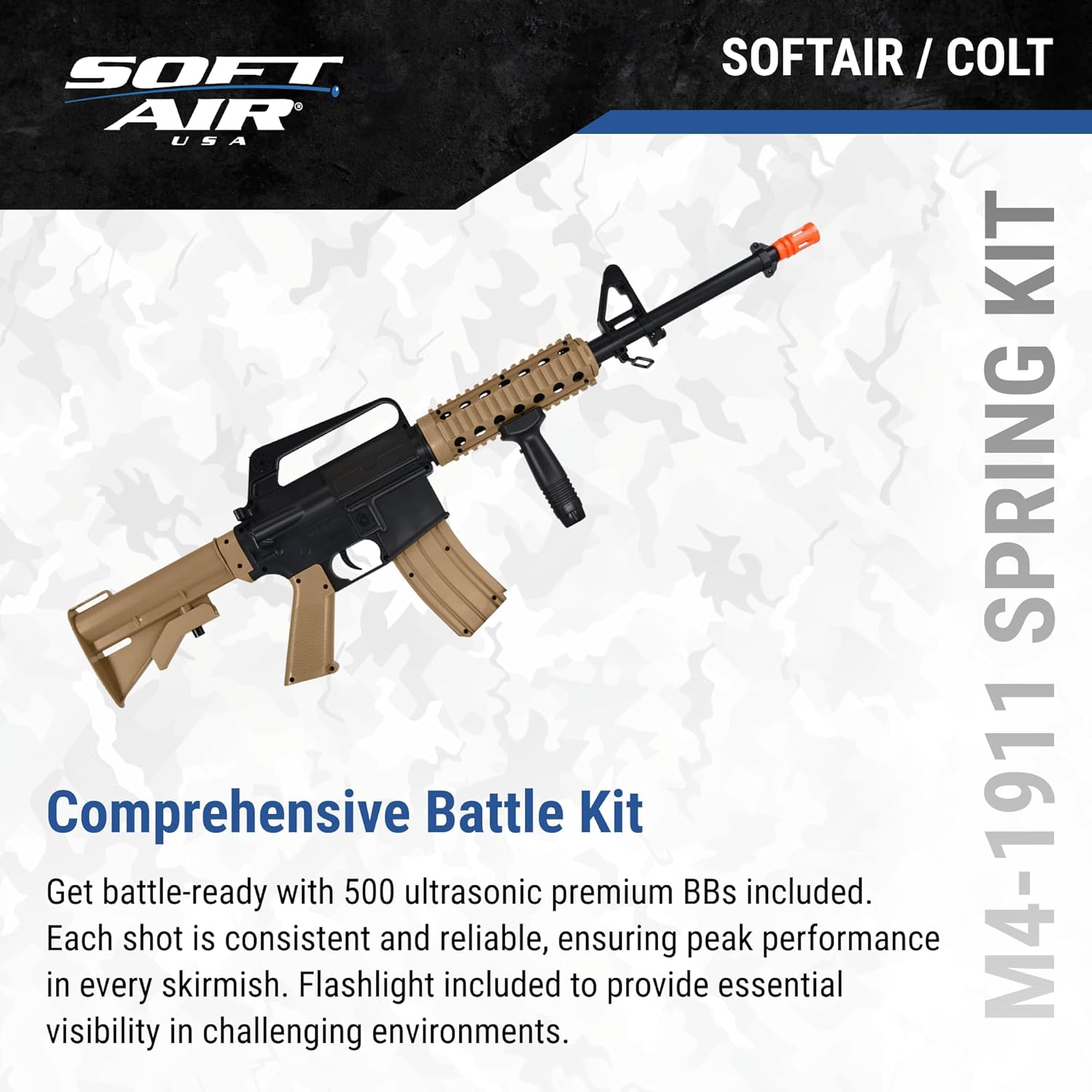 Soft Air COLT RIS Spring Airsoft Rifle and Pistol On-Duty Kit, Tan